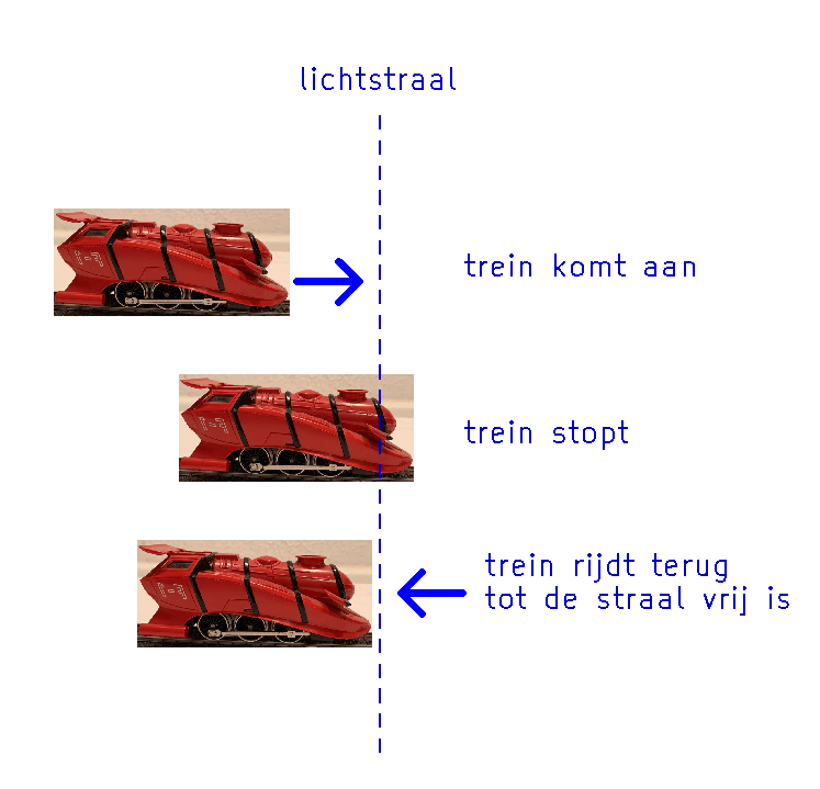 Anderzijds, als het nu je doel is om een koppeling boven een ontkoppelaar stil te zetten dan is het natuurlijk wel nodig dat de sensor de luchtspleet kan zien. In het programma koploper is het bijvoorbeeld mogelijk om een sensor over meerdere sporen te plaatsen. Een trein rijdt dan tot in de lichtstraal en dan een stukje achteruit zodat de lichtstraal weer vrijkomt zodat een andere trein er gebruik van kan maken.