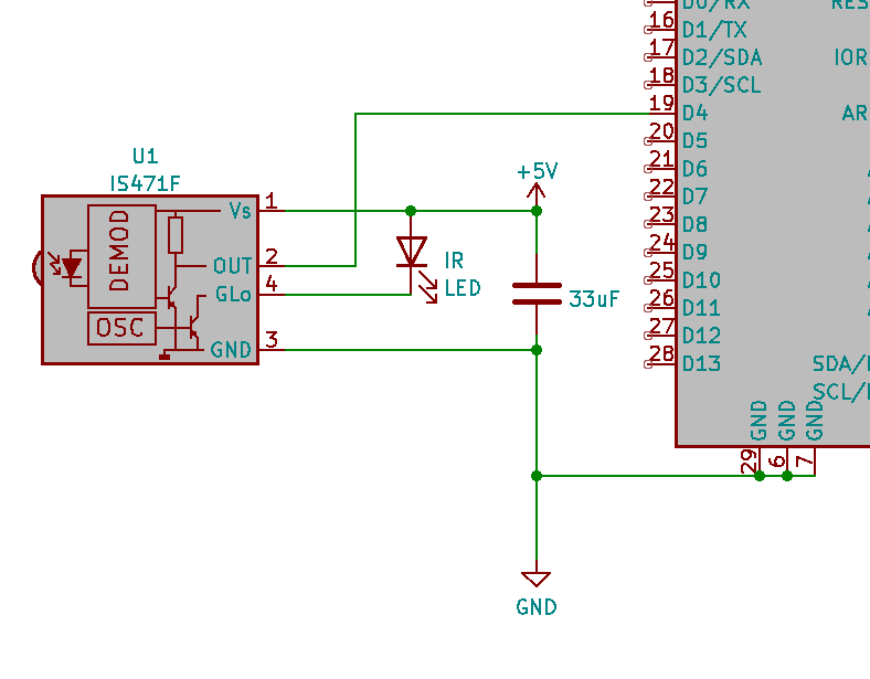 De Sharps IS471FE is een robuustere sensor die nagenoeg geen last heeft van omgevingslicht. De sensor heeft een aparte aansluiting voor een IR LED. Deze LED behoeft hierbij geen voorschakelweerstand.