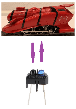 Deze sensor kan ook als reflectie sensor gebruikt worden. Je kan ontvanger en zender inbouwen tussen je de bielzen van je spoor of je gebruikt hem echt als lichtsluis door de led tegenover de ontvanger te plaatsen.