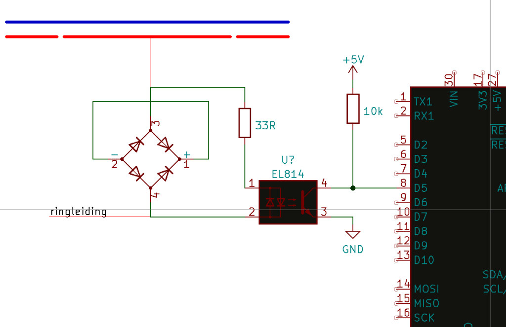 Een meer betrouwbare methode om trein te detecteren is door middel van stroomdetectie. Er zijn meerdere manieren om dit te bereiken. Je kan gebruik maken van thoroïdes (ronde ijzeren ringen met koperwikkelingen), speciale stroommeet IC’s of de simpele optocoupler en gelijkrichter methode. Dat laatste is wat ik hier ga uitleggen. Dit circuit is makkelijk te maken omdat er zo weinig componenten bij komen kijken.