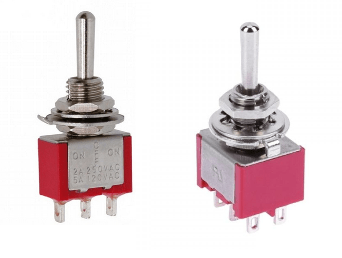 Er zijn ook meerdere manieren waarop deze schakelaars schakelen. Een contact kan een enkele contact zijn (single throw) of het kan een wisselcontact zijn (double throw).