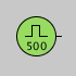 De puls generator heeft geen ingangen alleen een uitgang. Deze uitgang toggelt elke x aantal tijd. Deze tijd kan je instellen in millisecondes. De tijd instellen kan je doen door met je muis boven de 0 te hangen. Bovenin verschijnt dan deze tekst.