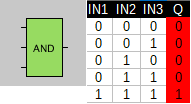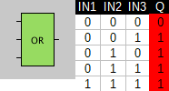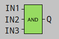 Een blok heeft links ingangen (IN1, IN2 en IN3) en rechts een uitgang (Q). Bij digitale blokken is het zo dat een ingang of uitgang of HOOG of LAAG is. In het geval van een Arduino is HOOG gelijk aan 5 Volt en LAAG gelijk aan 0 Volt.