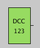 Het DCC blokje (toegevoegd in versie V1.2.0) kan worden gebruikt om een arduino via DCC aan te sturen. De uitgang Q wordt hoog als het corresponderende wisseladres recht wordt gezet en Q wordt laag als dit wisseladres krom wordt gezet.