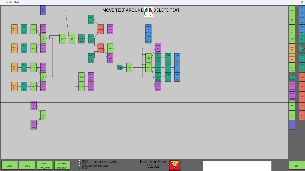 Om deze drempel kleiner te maken, heb ik een grafische programmeeromgeving gemaakt die ik “FunctionBlox” heb genoemd. Met FunctionBlox kan je op een grafische wijze een arduino vertellen wat hij moet door door zgn. logische poorten en dat is immers heel ‘logisch’.