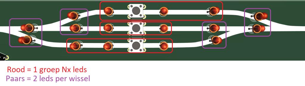 Elke Nx schakelaar kan een of meerdere leds hebben. Deze leds gebruik ik meestal om de begin en eindsporen te verlichten.