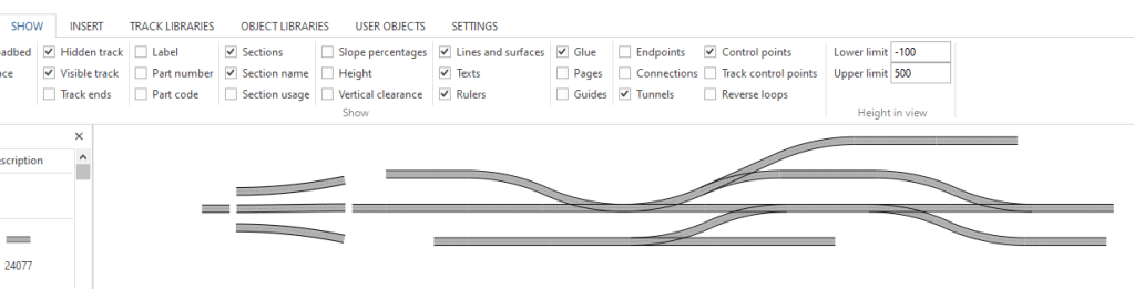 Onder ‘Show’ zet ik ‘track ends’, ‘connections’ en ‘track control points’ uit zodat het er zo uit komt te zien.