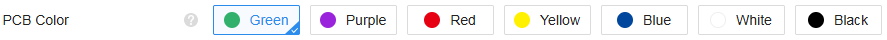 Als het ontwerp dan af is dan genereer ik in KiCad de benodige gerber files en daarmee kan ik de print bestellen bij JLCPCB. Bij het bestellen staan alle instellingen standaard goed voor deze panelen, behalve de kleur. Dit is de selectie aan beschikbare kleuren