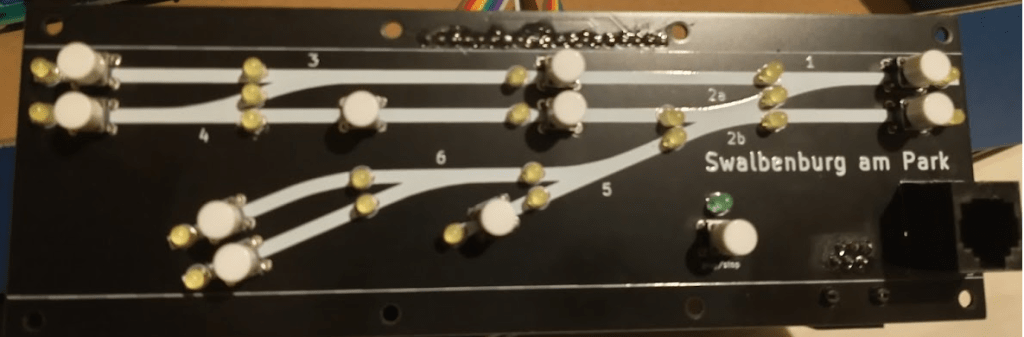 Een verlicht schakelpaneel is natuurlijk wel zo mooi. Bij een Nx stijl paneel doe ik standaard alleen leds aanzetten die langs de ingestelde route liggen. De wissels die niet meedoen gaan uit en de wissels die wel gezet zijn, gaan aan. Zo gaan ook alle Nx leds uit behalve het beginblok, eindblok en eventueel blokken die er tussen in liggen. Dit is wel een software optie die ik makkelijk uit kan zetten. Als jij wilt dat je wisselleds altijd branden, kan dat gewoon.