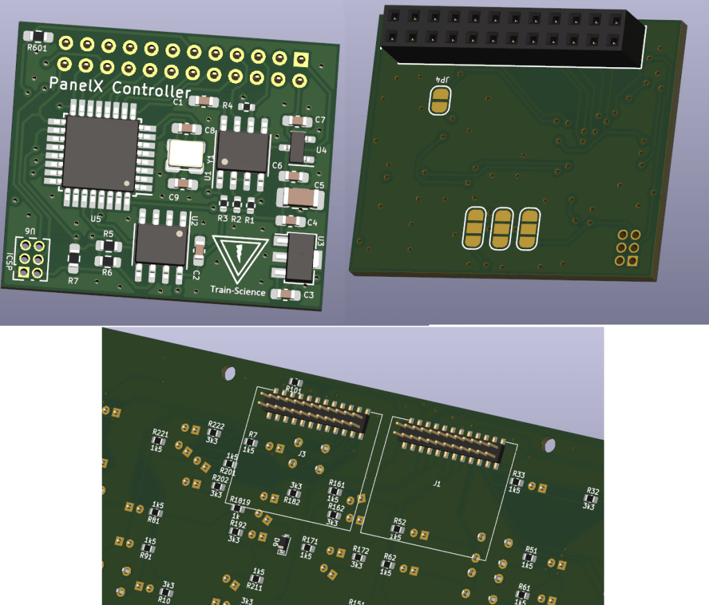 De andere controller is wel een echte volwaardige print. Dit is de Train-Science PanelX Controller. Hij is ongeveer zo groot als een postzegel en kan achterop het schakelpaneel gemonteerd worden. Deze werkt met XpressNet.