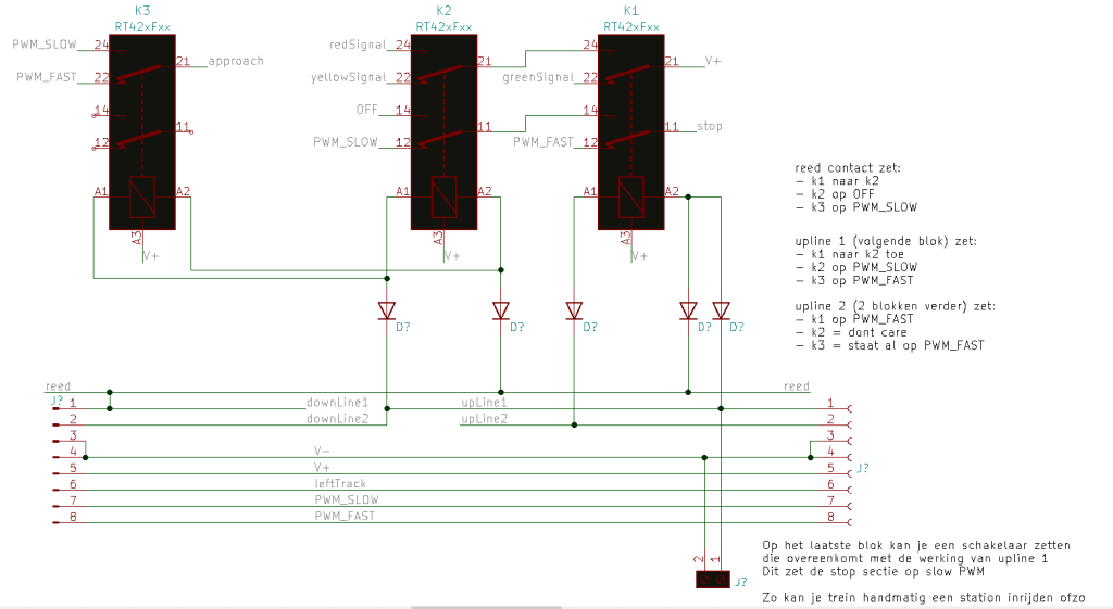 Over het aansturen valt meer te zeggen. Het is erg afhankelijk wat voor seinen het betreft en wat je er mee wilt kunnen. Het kan zo simpel zijn als kiezen tussen een groen en rood seinbeeld aan de hand van een schakelaar. Of er kan een DCC decoder gebruikt worden.
