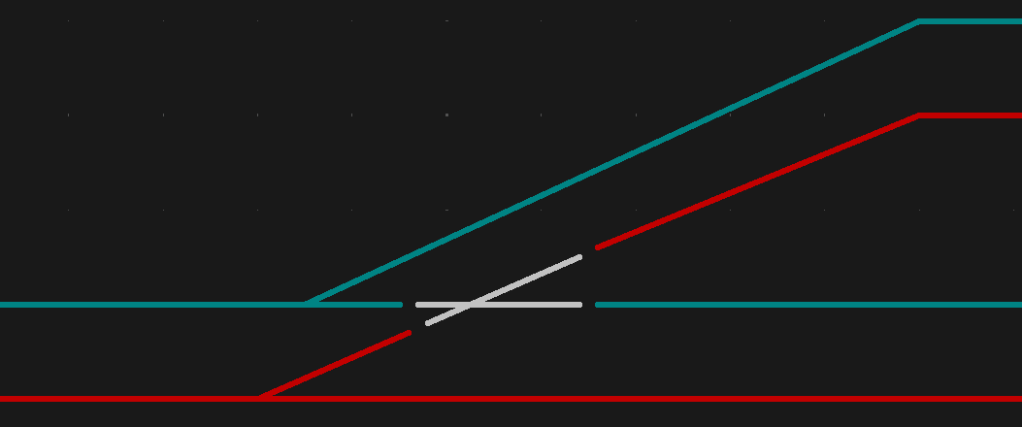 En aansluitschema. De stopsectie hoeft slechts zo lang zijn zodat je trein er op kan uitvallen.