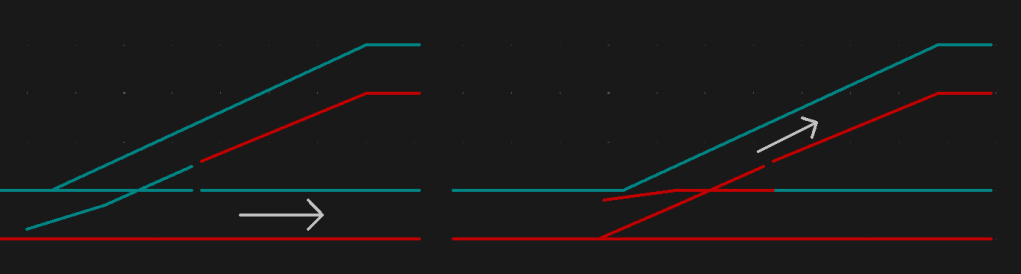 Wanneer de wissels naar elkaar toe worden gezet, is het van belang dat de transformators in dezelfde richting staan en op ongeveer dezelfde stand. Als de trafo’s op een andere richting staan, krijg je kortsluiting en de trein kan dan niet overrijden.