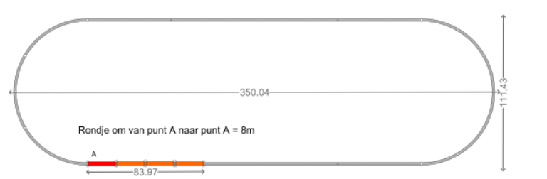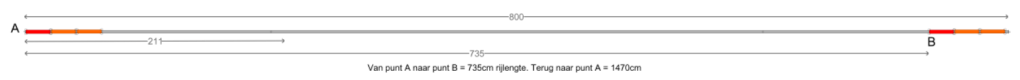 Je ziet dus dat duidelijk wat voor verschillen in rijlengtes je hebt tussen pendel- en rondrijbanen. En dan moet je nog nagaan dat de ovaal slechts 3,50m lang is in tegenstelling tot een pendelbaan met dezelfde lengte aan treinrails.