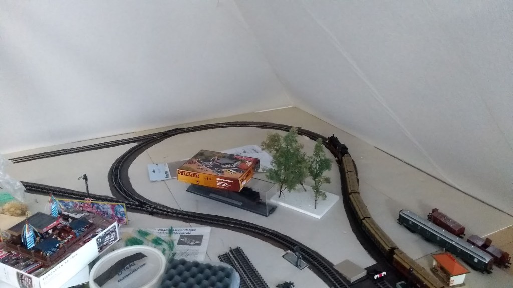 De ruimtes onder menig modelbanen worden zodoende ook niet efficiënt benut. Als je 10m2 aan baan heb, dan moet je eens uitrekenen hoeveel extra ruimte je creëert voor jezelf door je baan 40cm te verhogen.