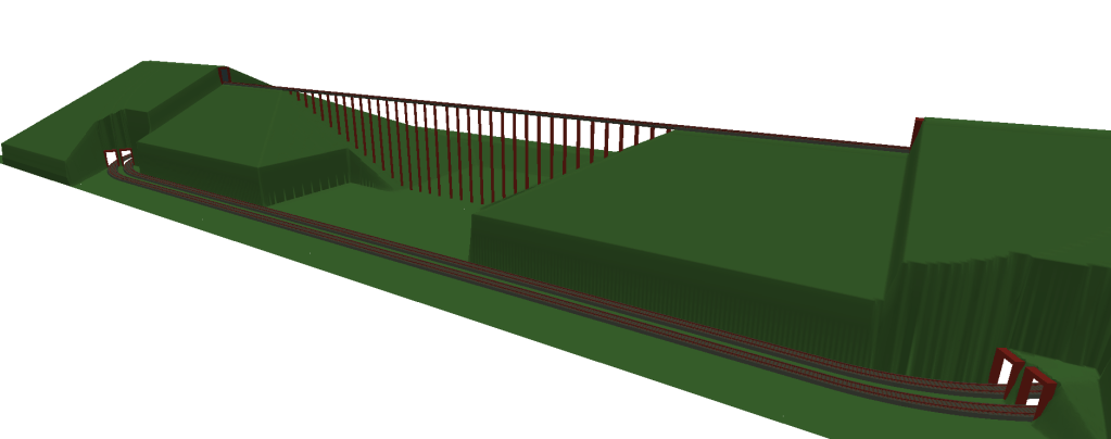 Het is een simplistisch voorbeeld, maar het illustreert wel het idee. Op de 35m hoge brug kan een pendeltrein rijden die niet aansluit op de rest van het hoofdspoor.