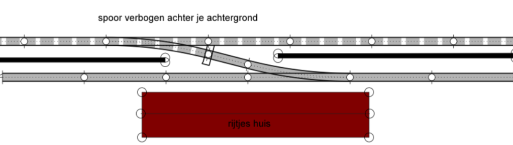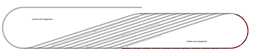 Toelichting: Velen van ons vinden dit misschien nog wel het leukste van de hobby. Simpelweg spelen met de trein, alleen we noemen het rangeren. Om een beetje leuk te kunnen rangeren, heb je tenminste een paar kopspoortjes nodig en eventueel nog een omloopspoor.