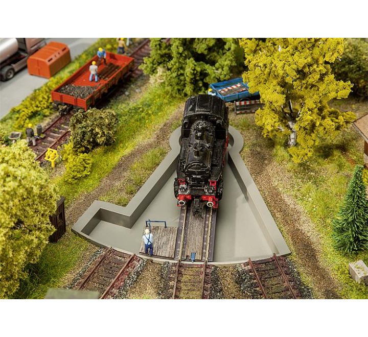 De segment draaischijf zoals wij die kennen is een bestaand iets. Er zijn ook bouwpakken van o.a. Faller van te koop zoals deze.