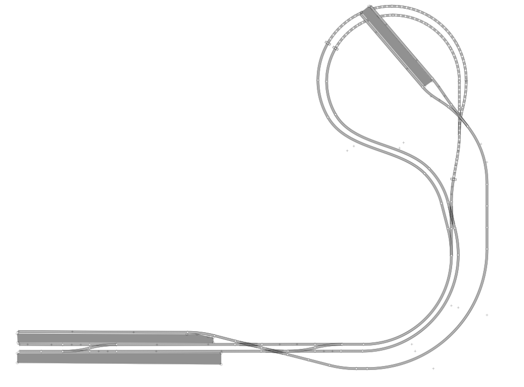 In dit voorbeeld heb ik een klein stopstation toegevoegd terwijl ik de lus heb behouden. Het had natuurlijk ook zonder lus gekund. Maar door toch die lus aan te houden, heb je toch meer rijmogelijkheden. Als een trein is aangekomen bij het kopstation, kan je een 2e trein laten vertrekken die je dan een rondje lus kan laten rijden, terwijl jij rustig kan omlopen of iets rangeren op het kopstation.