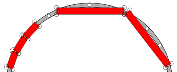 Maar verberg je de lus nu uit het zicht, kan je prima een R1 of een R2 boog gebruiken. En dat kan ontzettend veel ruimte besparen. Beschouw het volgende voorbeeld van een ovaal.