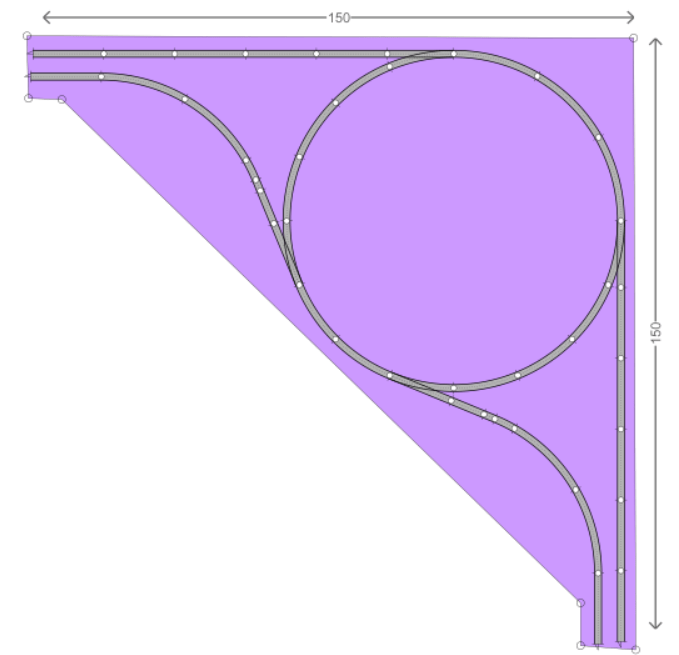 Sommige mensen vinden het leuk om een zolang als mogelijke route uit te stippelen op de beschikbare ruimte. Het is leuk als je trein er lang over doet. Dat kan je natuurlijk op meerdere manieren voor elkaar krijgen. Je kan de hoogte in gaan, je kan krappere bogen nemen etc. Nu denk ik dat voor menig man het niet zo moeilijk is om een zo lang als mogelijke route uit te stippelen. Als je je rails geometrie en de grootte van je ruimte goed kent.